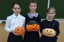 Ученицы 4а класса Загидуллина Диана, Лобачёва Ирина, Махова Аделина приняли участие в конкурсе тыкв к "Halloween"