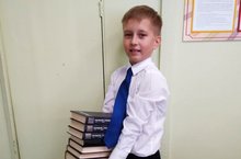 Ученик 4б класса Найдёнов Евгений принял участие в акции "Подари книге вторую жизнь", передав в школьную библиотеку книги из домашней библиотеки.