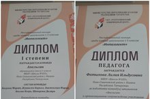 Дипломом 1 степени награждена команда "Апельсин" 1а класса ( кл.рук.Фатыхова Л.И.).