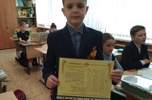 Ученики 3б класса (кл.рук. Мухина Н.В.) приняли активное участие в акции "Победа": в полном составе класс носит георгиевскую ленту - символ Победы в Великой Отечественной войне. Цвета этой ленты, оранжевый и черный, обозначают следующее: