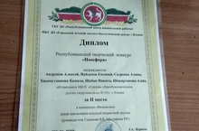 Ученики 4Б класса Андронов Алексей, Найдёнов Евгений, Садреева Алина, Хисамутдинова Камила, Шабан Никита, Шакирзянова Алия под руководством Галимовой В.Р., Мустафиной Р.Р. заняли 2 место в Республиканском творческом конкурсе"Ноосфера". Поздравляем!