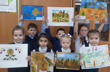 Ученики 1а класса ( кл.рук Фат ыхова Л.И.) приняли активное участие в районном конкурсе творческих работ " Зеркало природы"