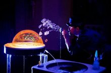 Дети увидели, трюки с мыльными пузырями на светящимся столике, мыльные пузыри , которые не подчиняются законам физики, самый большой пузырь , величиной во весь зал. ... -