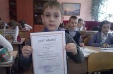 Поздравляем ученика 2б класса Сёмина Сергея (кл.рук. Мухина Н.В.), принявшего участие в XII Всероссийской олимпиаде по русскому языку для 1-4 классов (Олимпиада Онлайн) и получившего Диплом I степени, набрав 30 баллов из 30. Желаем дальнейших успехов.