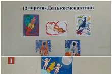 12 апреля в начальной школе была проведена выставка рисунков,посвященных Дню космонавтики.