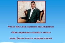 В день рождение татарского поэта Фаниса Яруллина на базе МБОУ СОШ 103 Ново-Савиновоского района прошла Городская научно-практическая конференция "Мин тормышка гашыйк" (Я влюблён в жизнь), посвященная творчеству поэта. На открытие конференции были приглашены почётные гости: начальник управления образования Хадиуллин Ильсур Гараевич, начальник отдела управления образования Латышева Галина Геннадьевна, а также жена Фаниса Яруллина - Нурсия Яруллина.