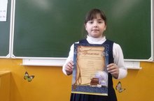 Ученица 4 "В" класса Яшина Злата награждена грамотой за активное участие в городской научно-практической конференции "Я влюблён в жизнь", посвящённой творчеству Фаниса Яруллина.