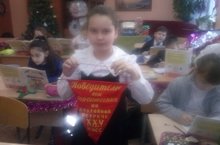 Ученица 3 в класса Ибрагимовой П для школьного музея принесла вымпел победителю 1990 годов.