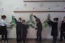 Ученики 2б класса продолжают украшать школу поделками, изготовленными на уроках технологии и ИЗО.