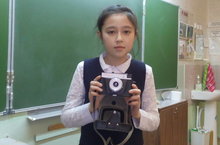 Ученица 4А класса Яковлева Катя(кл.рук Фатыхова Л.И) передала в школьный музей фотоаппарат, которым пользовались ее бабушка и дедушка