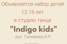 Объявляется набор детей 12-16 лет в студию танца Indigo kids