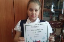 Ученица 2 в класса Соломкина Я (кл. рук-ль: Андреева М. В.) награждена Похвальной грамотой онлайн-олимпиады по математике от Учи. ру "Майская Дино-олимпиада".Поздравляе -