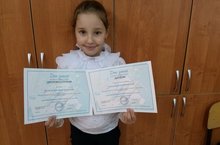 Ученица 1 А класса Зиннатуллина Дина (кл. рук. Гайнуллина А. М.) награждена дипломом I степени за участие в I Всероссийской олимпиаде по математике. Диплом также вручили и классному руководителю за подготовку участника олимпиады.