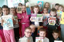 1 А класс (кл. рук. Гайнуллина А. М.) принял активное участие в акции "Подари книге вторую жизнь". Дети подарили школьной библиотеке художественные книги.