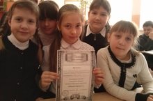 Почетной грамотой награждается ученица 4 а класса Чебанова Татьяна(кл. рук-ль: Андреева М. В.) за активное участие в школьном конкурсе инструментального отделения "Юный виртуоз" ДМШ №11. Поздравляем!!!