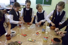 Ученики 4б класса (кл.рук. Мухина Н.В.) приступили к выполнению долгосрочного проекта «Цветы для школьной клумбы». Ребята выбрали семена, подготовили почву и изготовили маленькую теплицу. Семена посеяли, теперь предстоит ухаживать за растениями.