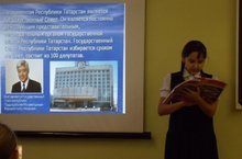 В 4б классе (кл.рук. Мухина Н.В.) был проведен Парламентский урок «Здесь рождаются законы», посвященный 20-летию Государственного Совета Республики Татарстан. Ребята вспомнили о трех ветвях власти, провели аналогию между Парламентами РФ и РТ, которые являются законодательной властью государства.