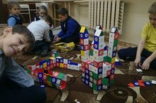 На занятиях группы продленного дня (учитель Мустафина Р.Р.) дети с удовольствием смотрят исторические познавательные фильмы,обсуждают их,и даже макеты по ним строят. Так,например,сегодня они решили построить малые и большие замки. Какие же они молодцы, каждый вложил свой труд.