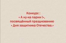 Наши защитники, мальчики 9-11 классов, спешим сообщить, что в ближайшее время состоится конкурсное мероприятие «А ну-ка, парни». Заранее начинаем готовиться: от каждого класса просим создать команду из 10 человек. Конкурсная программа включает в себя следующие этапы: