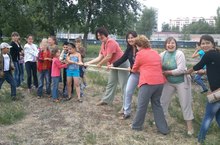 Летний лагерь. 19 июня. До обеда 1 и 3 отряды отправились в ЦВР на мероприятие "Навстречу Универсиаде". После обеда - главное событие дня - Сабантуй.