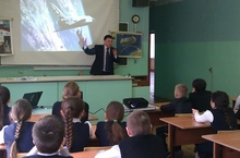 Сегодня в день авиации и космонавтики директор школы Р.Н.Хабибуллин в начальных классах и в 9-х классах провел уроки,посвященные космосу и космонавтике.Рассказал о строении и первооткрывателях Вселенной,о космических кораблях и полетах в космос,о космонавтах.Затем учащиеся отвечали на вопросы викторины.