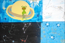 Ко Дню космонавтики учащимися 2б класса (классный руководитель Мухина Н.В.) были выполнены работы по теме «Звёздное небо». Ребята изобразили своё видение звезд, созвездий и планет, добавив немного фантастики.