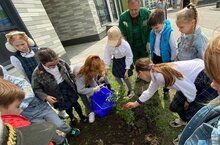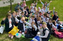 Юннаты 2Н класса приняли участие в Международной акции «Сад памяти» в честь павших героев Великой Отечественной войны. В СССР с фронта не вернулись 27 миллионов человек, из них 378 тысяч - татарстанцы.Акция "Сад памяти" стартовала 3 года назад. Ожидается, что всего в рамках мероприятий в Татарстане будет высажено свыше 1 млн. саженцев. Как правильно высаживать растения, подкармливать и поливать, на личном примере показал садовник школы Александр Анатольевич.