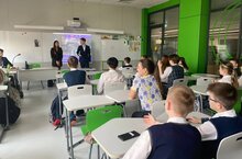 Сегодня прошёл классный час, посвящённый всероссийскому конкурсу «Большая перемена» с учащимися 6 «В» класса. В качестве спикеров были приглашены финалисты конкурса: финалист 2 и 3 сезона, ученик 11 «А» класса школы №89 Дюрягин Д., полуфиналист 2 и 3 сезонов, заместитель координатора региональной команды конкурса, ученица 10 «А» полилингвального комплекса «Адымнар - Казань» Валиуллина Ф., ученик 11 «А» класса школы №89 Сергеенко Н.