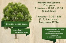 Начальная школа 10 апреля 2 смена - 12.30-13.10 (3 классы), 1 смена - 7.30-8.45 (1, 2, 4 классы) Бичурина 22/26. Принимаем на заднем дворе школы. Необходимо заранее взвесить и указать класс.