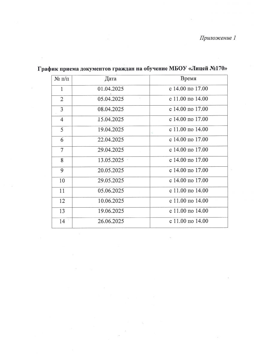 МБОУ "Лицей №170" объявляет о начале приёма документов c 01.04.2025г. для поступления в первый класс на 2025-2026 учебный год для детей, проживающих в семьях, родители которых имеют внеочередное, первоочередное, преимущественное право на зачисление в общеобразовательное учреждение, а также проживающих на закрепленной территории.