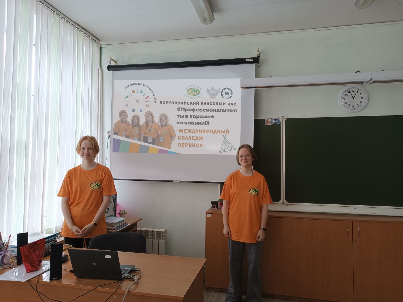 Нас встретил 9А класс школы. Ребята познакомились в Федеральным проектом "Профессионалитет", узнали о специальностях нашего колледжа. Получили ответы на вопросы относительно предстоящей приёмной кампании.