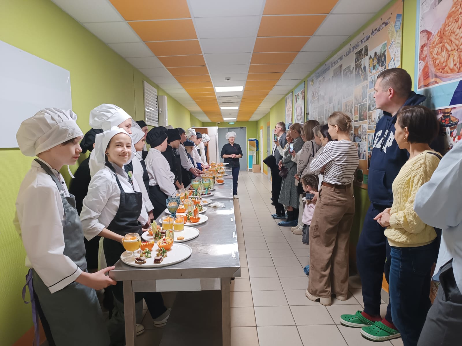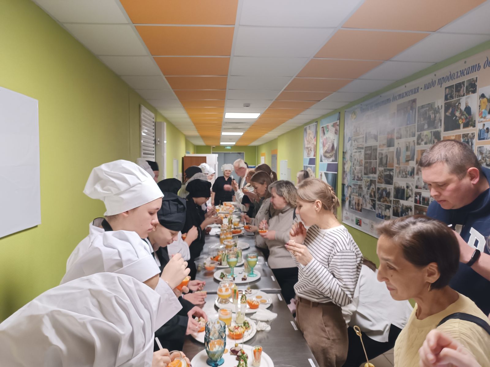 Опубликовано: 24.12.202424 декабря в преддверии Нового года и в заключении полугодия обучения нашей группы школьников - поваров, в колледже прошли дегустации блюд приготовленных детьми для своих родителей. Слушатели курсов подготовили разнообразные закуски, родители приняли активное участие в дегустации, им было очень интересно посмотреть где занимаются их дети, посмотрели поварские лаборатории колледжа. Преподаватель группы ПШ114 (первый год обучения) Веселова Наталья Павловна озвучила гостям о составе и технологии приготовленных учениками блюд, рассказала о том, как проходит обучение. Родители и дети получили позитивные эмоции и унесли с собой вкусные гостинцы.