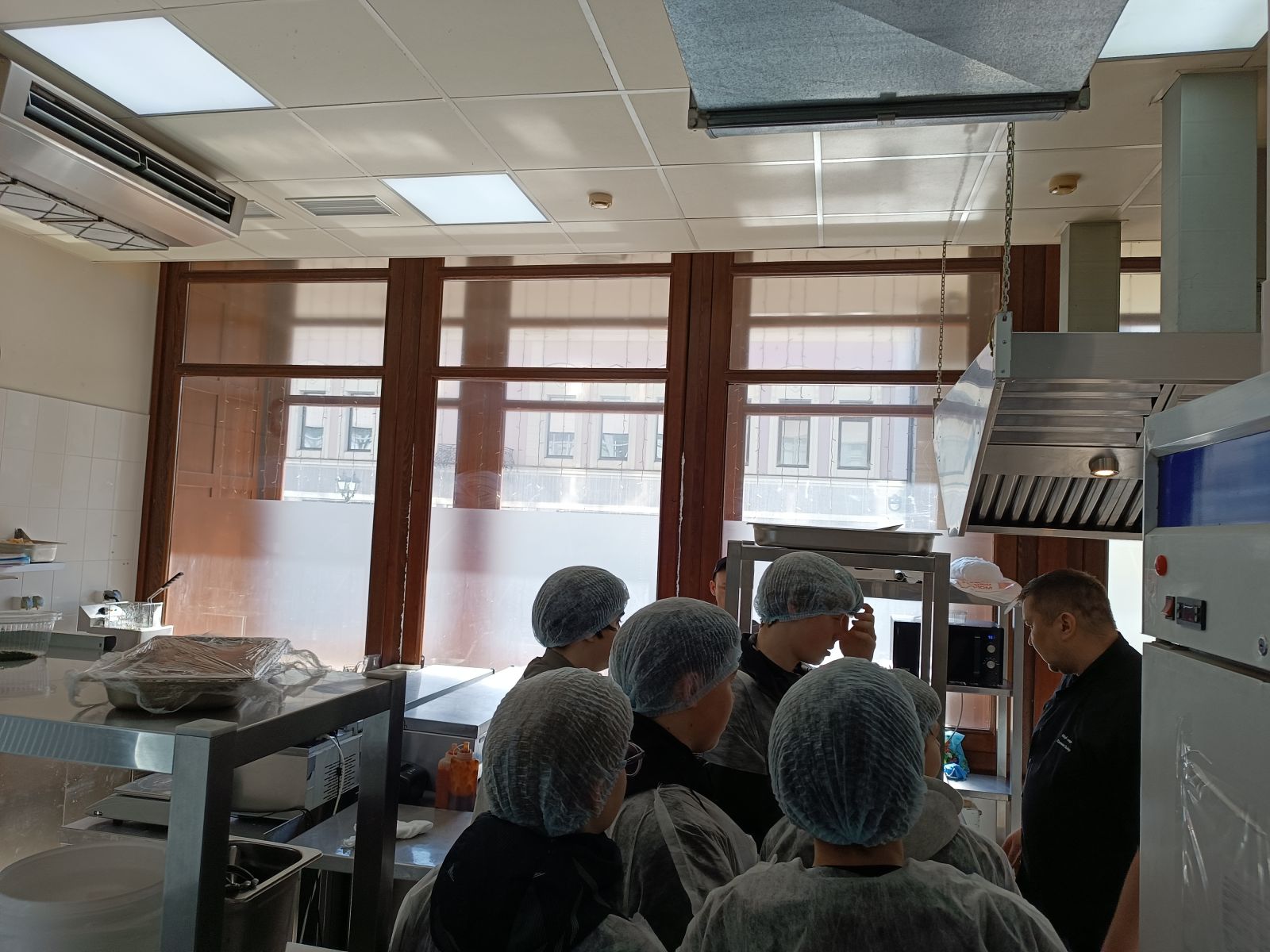 В практической части экскурсии ребята посетили производственные зоны ресторана, увидели кухню изнутри, узнали о правилах хранения продуктов, соблюдении санитарных норм и работе с профессиональным оборудованием.
