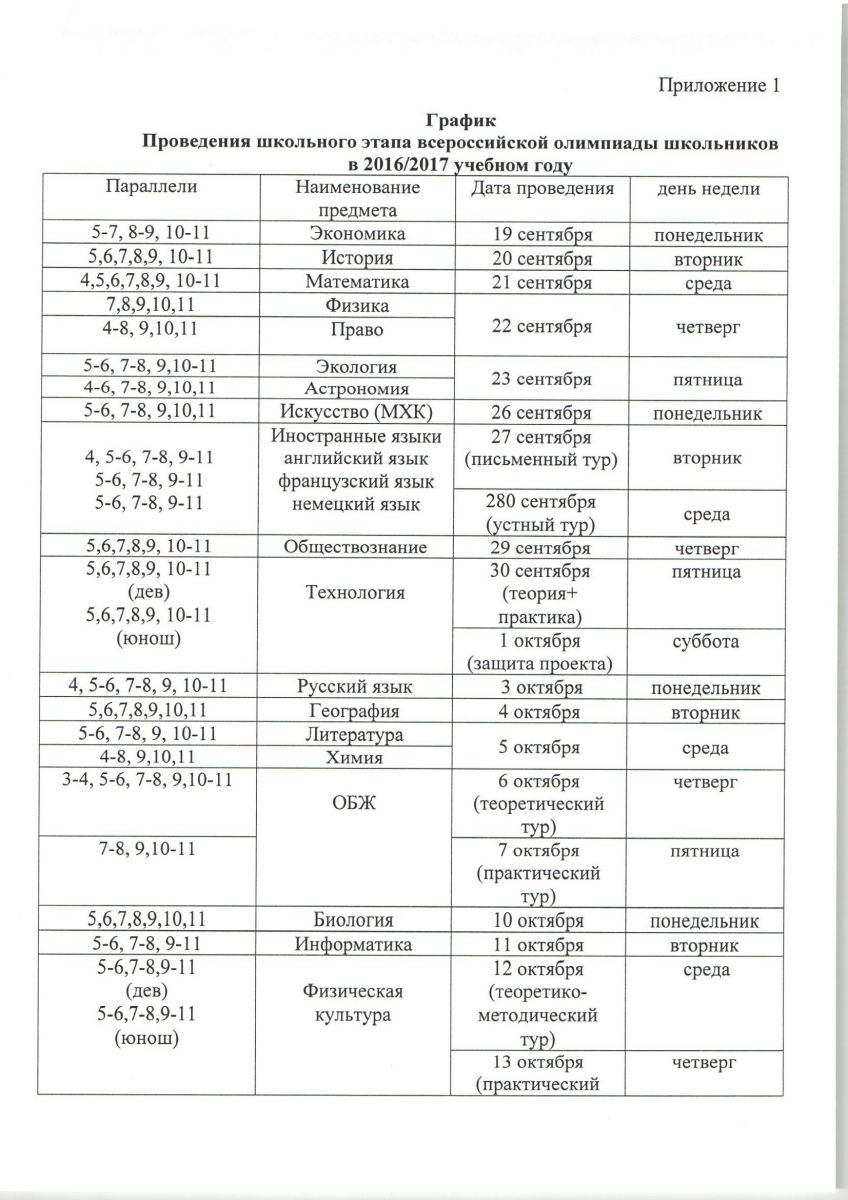 График проведения школьного этапа республиканской олимпиады школьников в 2016/2017 учебном году