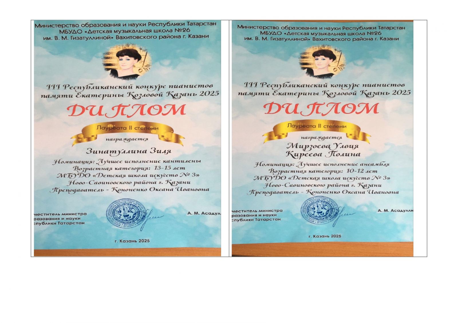 Союз композиторов Республики Татарстан и Гродское методическое объединение преподавателей специального фортепиано ДМШ и ДШИ образования г.Казани отметили Благодарностью преподавателя нашей школы Бус Ларису Сергеевну по итогам Республиканского конкурса пианистов имени профессора Казанской государственной консерватории им Н.Г.Жиганова. Наши Поздравления!