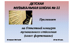 Приглашаем 23 апреля 2014 года , в 18.30, на Отчетный концерт музыкальнго отделения (класс фортепиано). Актовый зал СОШ №132