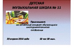 Приглашаем 29 апреля 2014 года, в 18.00, на отчетный концерт обучающихся инструментального отделения в Актовый зал СОШ №132
