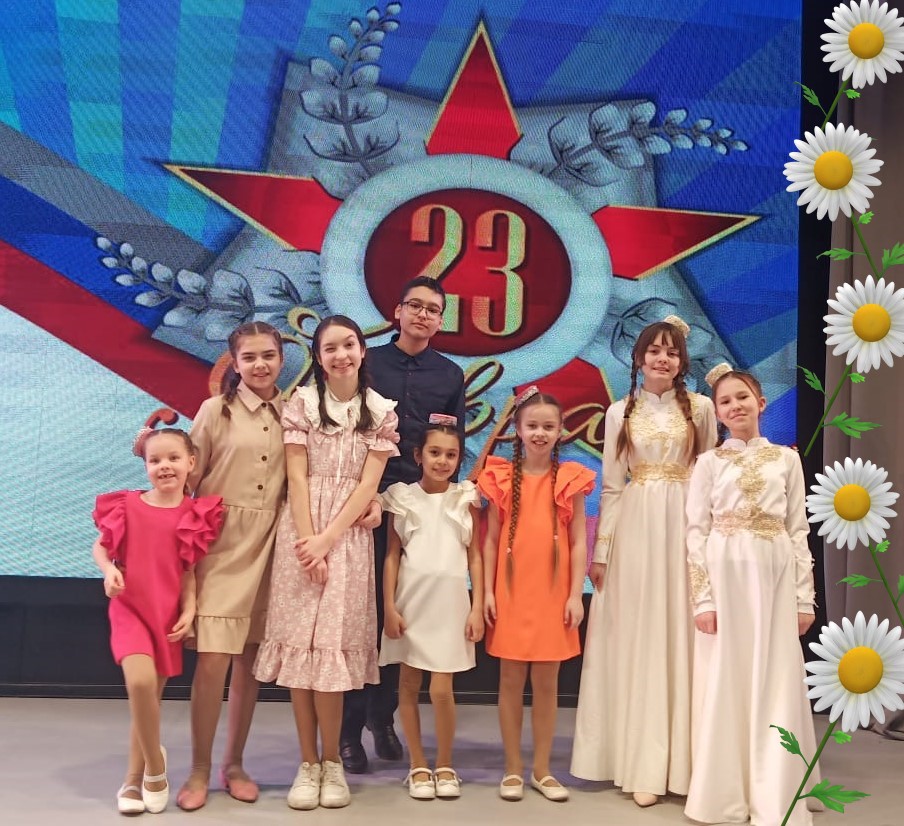 В праздничном концерте на сцене актового зала полилингвального комплекса «Адымнар» выступили девочки из вокального ансамбля «Лейсан» (руководитель В.Д. Гатауллина) и Муртазин Амир (преподаватель Л.Б. Маркова).