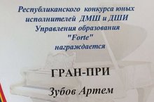 Поздравляем с яркой победой Артёма Зубова! 20 мая на Республиканском конкурсе "Форте" ему была присуждена высшая награда Гран При! Молодец!! Поздравляем также преподавателя Миргалимову Кампилю Наилевну и концертмейстера Лейлу Аглямутдиновну Кукарову, благодаря которым Артём пришёл к такой высокой награде! Лейла Аглямутдиновна была признана лучшим концертмейстером на этом конкурсе! Желаем им всем всегда оставаться на такой высокой творческой волне!
