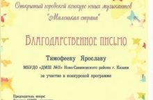 Поздравляем! Темофеева Яорослава Участника открытого городского конкурса " Маленькая страна.