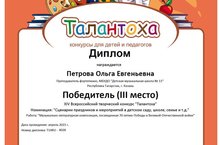 Поздравляем Петрову Ольгу Евгеньевну с победой в конкурсе!