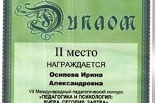 Поздравляем Осипову Ирину Александровну с победой в 7 международном педагогическом конкурсе "Педагогика и психология: вчера, сегодня, завтра"