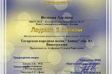 Поздравляем Волкову Аделину, Лауреат 2 степени в Ежегодном международном фестиваль-конкурсе детского и юношеского творчества Хрустальное сердце мира. преподаватель Агафонова Гульнур Рафаэлевна