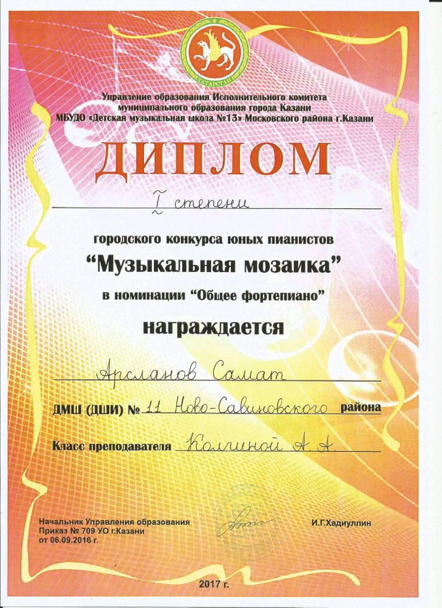 Арсланов Самат Дипломант I степени преподаватель Анна Александровна Колгина