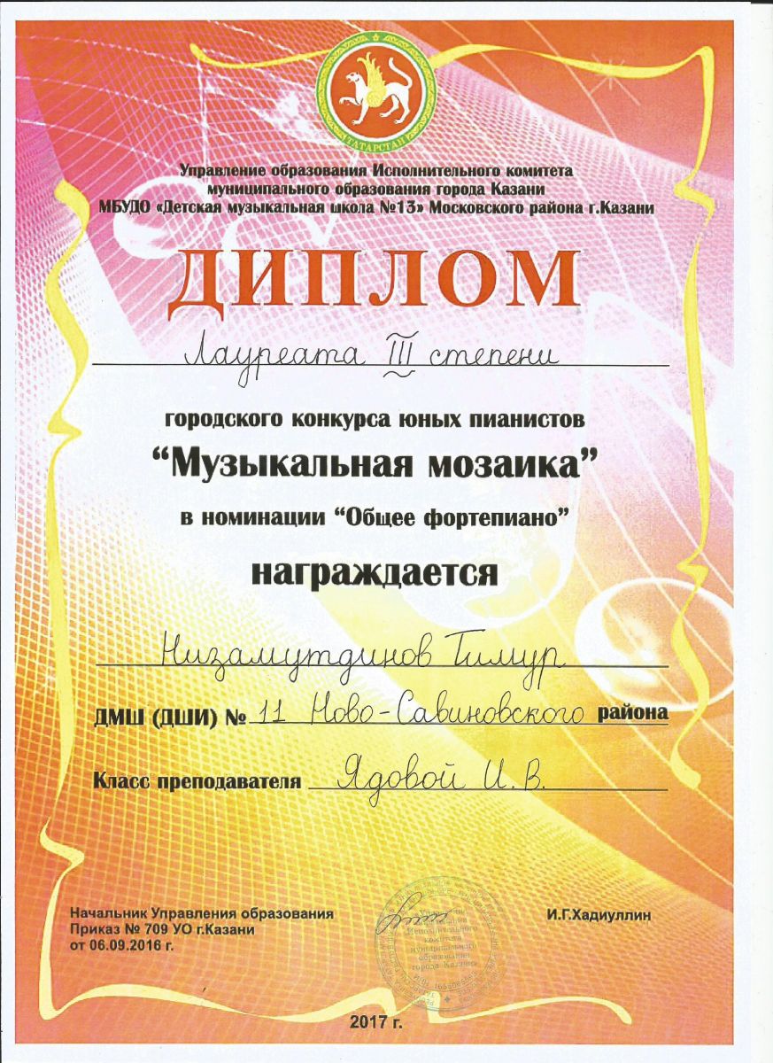 Низамутдинов Тимур Лауреат III степени преподаватель Ирина Вячеславовна Ядова