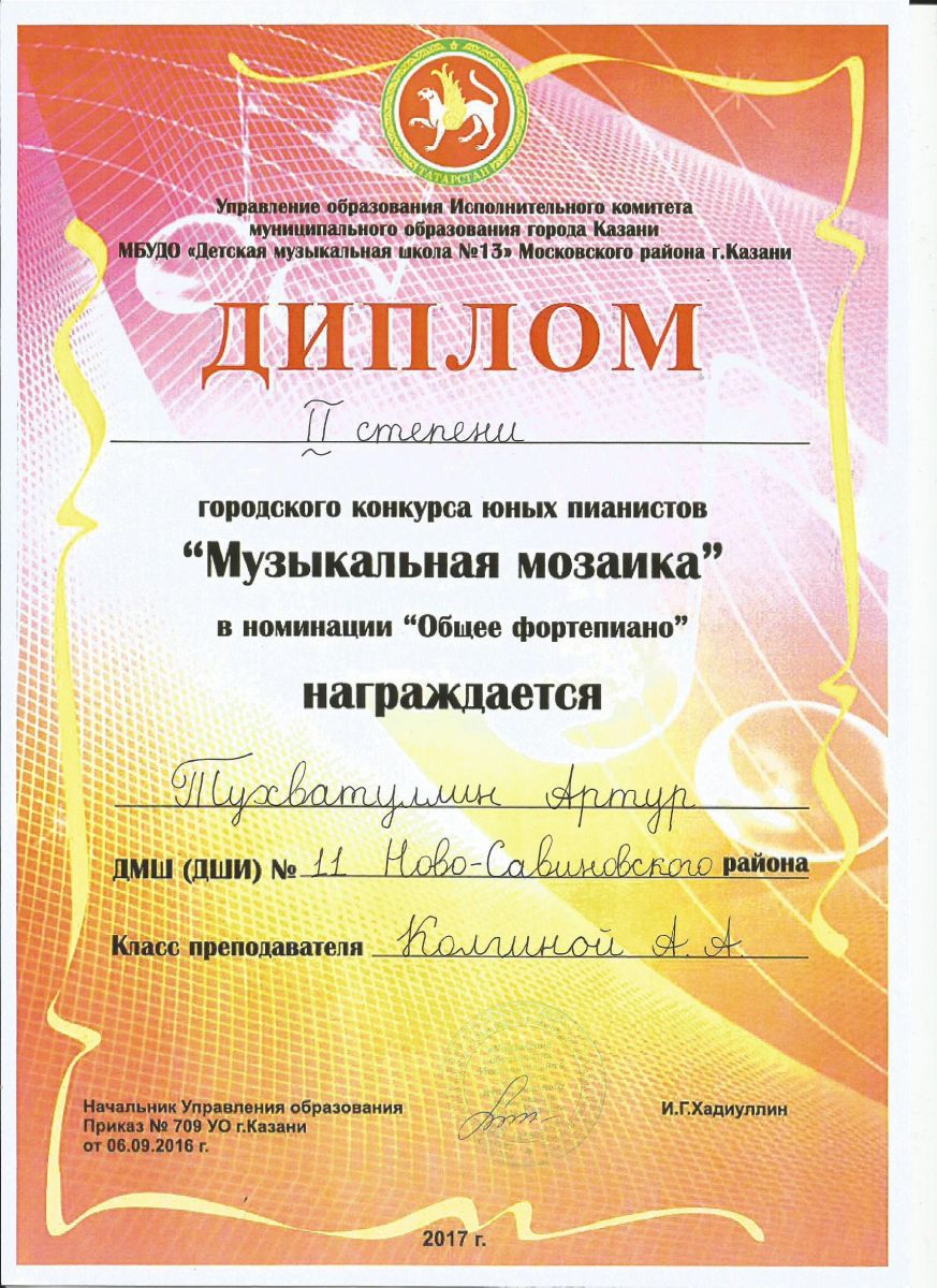 Тухватуллин Артур Дипломант II степени преподаватель Анна Александровна Колгина