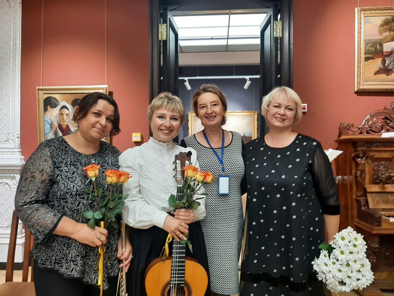 «Любви негромкие слова» прозвучали среди художественных произведений – экспонатов Государственного музея изобразительного искусства РТ – в исполнении наших преподавателей Гульнары Мухутдиновой (сопрано), Гюзель Лупандиной (флейта), Лейли Кукаровой (фортепиано) и выпускника школы 2021 года Булата Гайнуллина (баритон). В концерте принимали участие заслуженный работник культуры РТ Евгения Королькова (гитара, ведение программы) и выпускник Казанской консерватории Павел Шевнин.