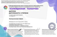Поздравляем с успешным выступлением на XI Международном фестиваль-конкурсе вокально-хореографического, театрально-художественного и инструментального творчества "Калейдоскоп талантов":