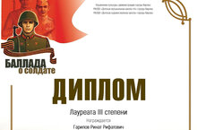 Поздравляем с успешным выступлением на IV Межрегиональном фестиваль-конкурсе авторского и исполнительского творчества "Баллада о солдате" Гарипова Рината - Лауреата 3 степени в номинации "Исполнитель". Руководитель Самигуллина Л.И., концертмейстер Ямалеева А.Я.