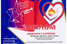 Поздравляем с успешным выступлением на VI Международном патриотическом фестиваль-конкурсе детско-юношеского творчества, посвященный Году Защитника Отечества и 80-летию Великой Победы в Великой Отечественной войне 1941-1945г.г. "Орлята учатся летать":